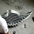 裝置材質(zhì):翅膀造型為熱鍍鋅板;底部鋼結(jié)構(gòu)表面噴塑處理;立柱為鍍鋅方鋼結(jié)構(gòu)。